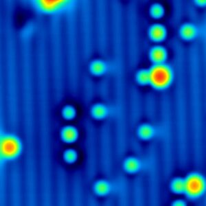Figure: Iron adatoms on InAs, forming spin chains whose spectrum is studied at the atomic scale.