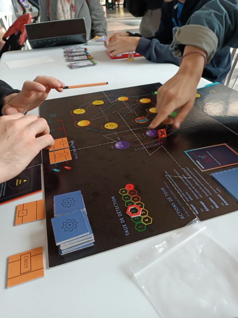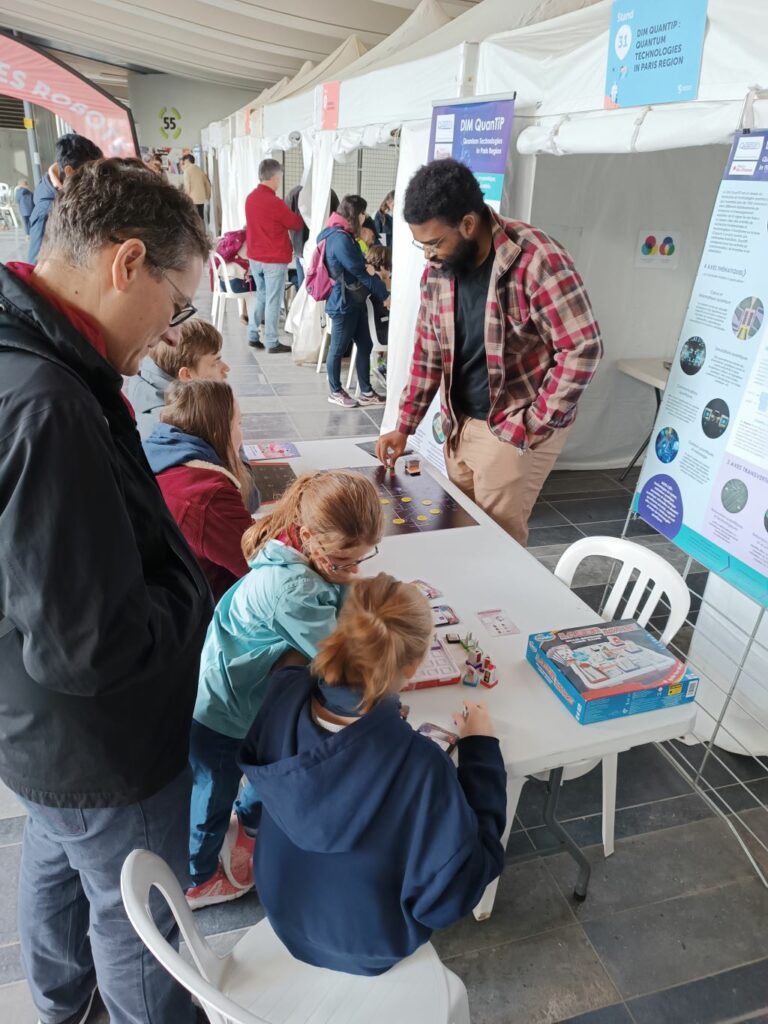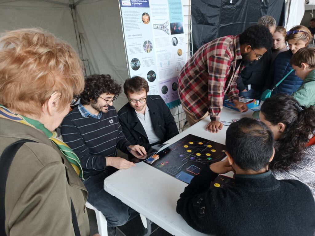 We were able to present the QuanTiP DIM and our activities to the general public. To kick things off, we used the game Entanglion as a basis for discussing quantum technologies. In this collaborative board game, participants must work together to travel through space and recover the spare parts of a quantum computer. It was the perfect opportunity for us to talk about the challenges currently facing research in the field of high technology production.